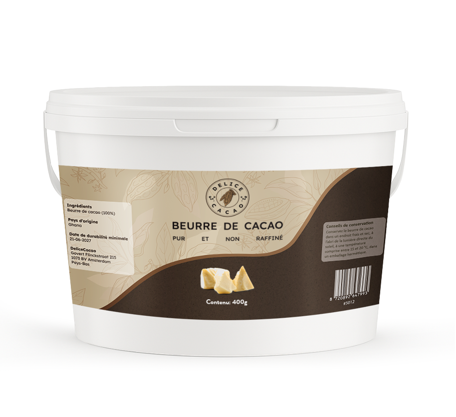 Store cocoa butter in a cool, dry place, away from direct sunlight, preferably in its original packaging. Our cocoa butter comes in food-safe packaging, with the expiration date clearly indicated on the label.
