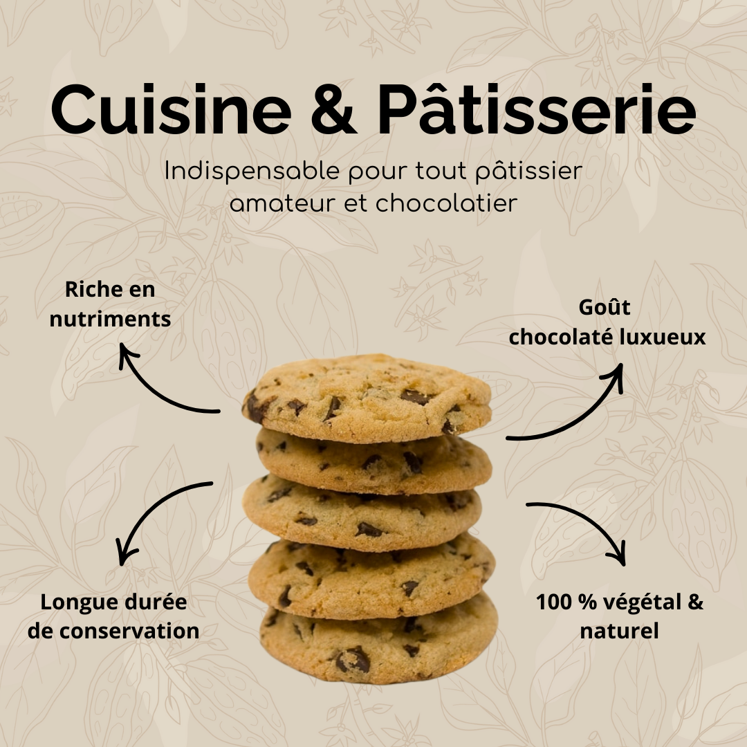 Cocoa butter is ideal for making chocolate bars, bonbons, cakes and brownies. It gives your culinary creations a silky texture and a delicious rich flavour.